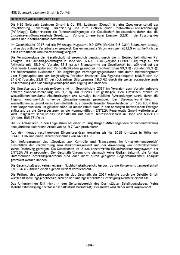 ENTEGA AG eingebunden. Der Geschäftsführung sind demnach keine Risiken bekannt, die für das