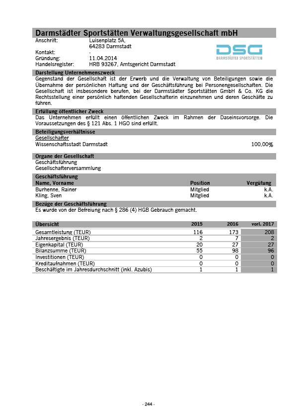 Gesellschaft ist insbesondere berufen, bei der Darmstädter Sportstätten GmbH & Co. KG die