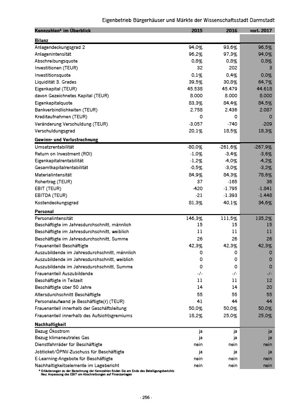* Erläuterungen zu der Berechnung der Kennzahlen finden Sie am Ende des Beteiligungsberichts