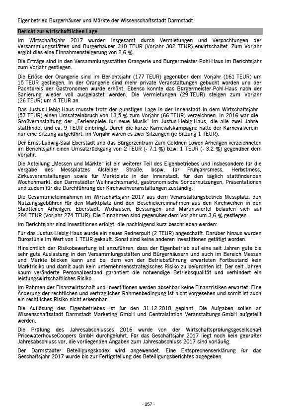 Versammlungsstätten und Bürgerhäuser 310 TEUR (Vorjahr 302 TEUR) erwirtschaftet. Zum Vorjahr