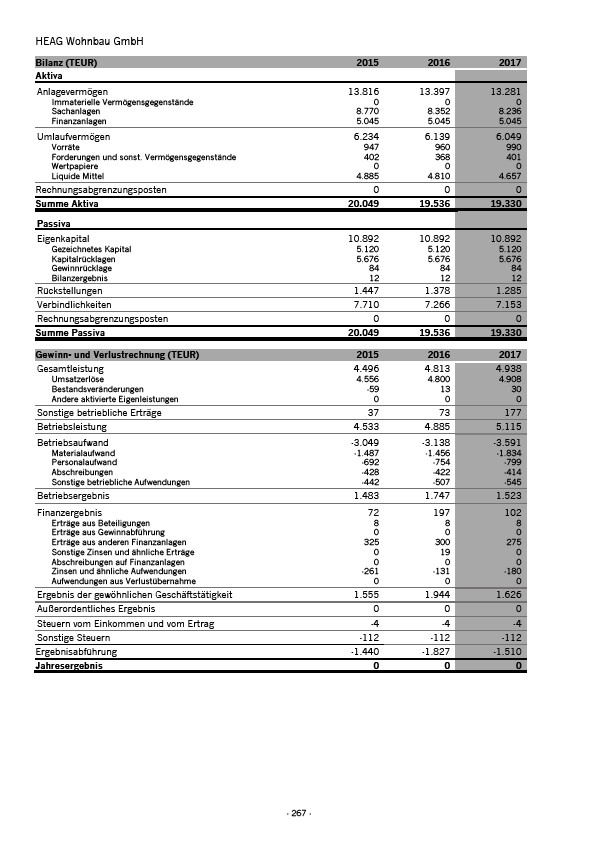 Gewinn- und Verlustrechnung (TEUR) 2015 2016 2017