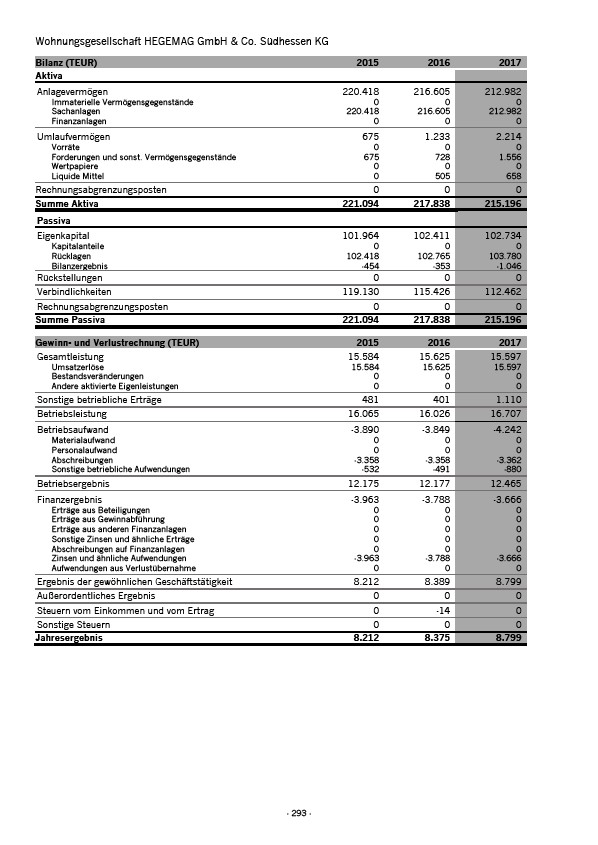 Gewinn- und Verlustrechnung (TEUR) 2015 2016 2017