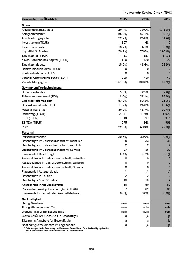 * Erläuterungen zu der Berechnung der Kennzahlen finden Sie am Ende des Beteiligungsberichts