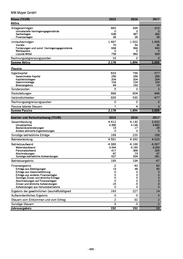 Gewinn- und Verlustrechnung (TEUR) 2015 2016 2017